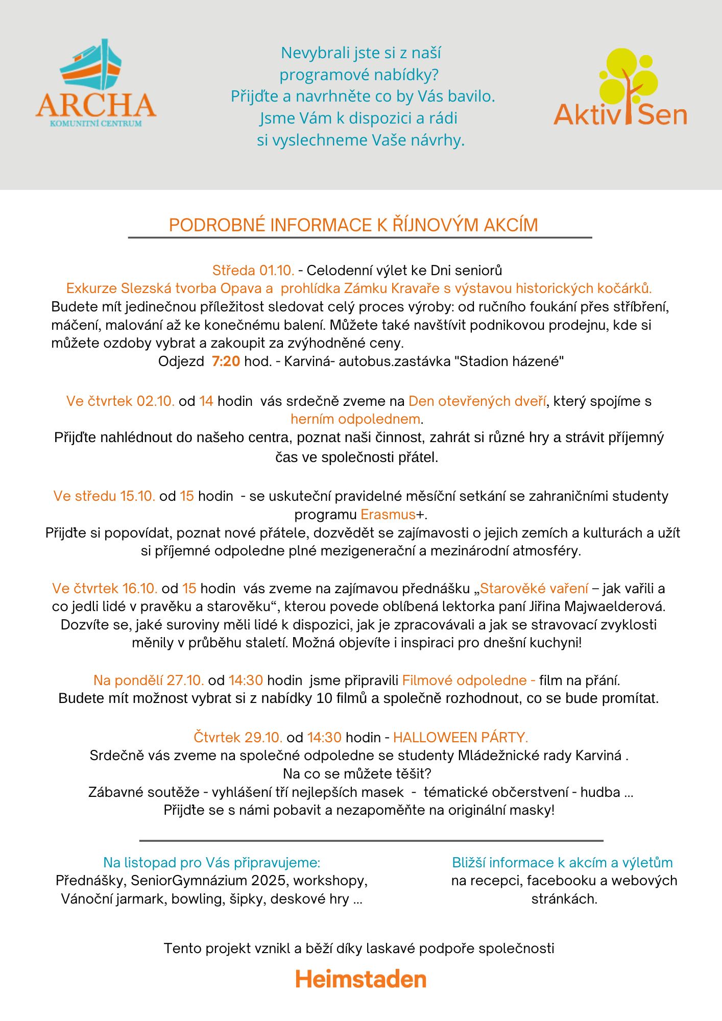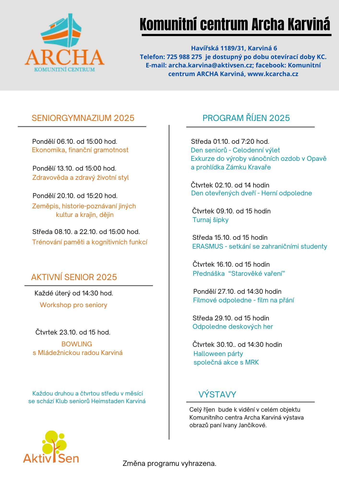 Komunitní centrum Archa slouží seniorům z Poruby, kteří nechtějí být jen doma, chtějí se učit novým věcem a setkávat se s přáteli. Podmínkou pro vstup do centra a využívání jeho prostor je členství v tzv. "Klubu přátel Archa". Tímto opatřením docílíme, že do centra budou docházet lidé, o nichž budeme mít přehled a zamezíme riziku krádeží. Členem se stáváte tehdy, když vypíšete jednoduchou přihlášku, která je ke stažení na našem webu v sekci přihláška, nebo ji obdržíte na recepci. Členové platí roční poplatek 100 Kč, ze kterého se následně platí např. sanitární prostředky.